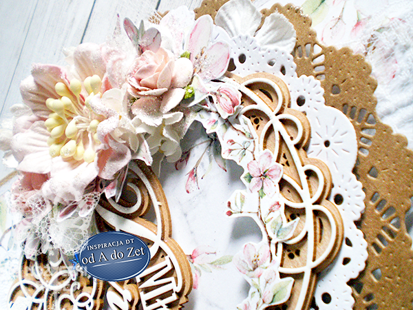 Na zakończenie naszego tygodnia inspiracji dla Od A do Zet pełnego ulotnych, materiałowych dodatków przygotowałam delikatną karteczkę ślubną przeplataną tiulem, koronką i różami na tiulu. Ażurowe tekturki od egoCraft również nadały pracy charakteru. Wszystko to zainspirowane cudowną kolekcją papierów "Rajska Jabłoń"od Galerii Papieru! Spójrzcie na ten mieniący się brokat! Jak Wam się podoba całość?